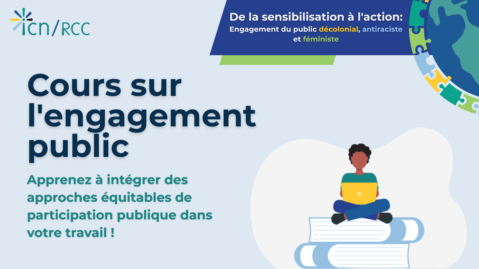 Nous sommes ravis que vous vous joigniez à ce voyage d'apprentissage. Ce cours est conçu pour vous fournir les connaissances, les compétences et les outils nécessaires pour mener à bien notre engagement public en utilisant des pratiques antiracistes et féministes.
